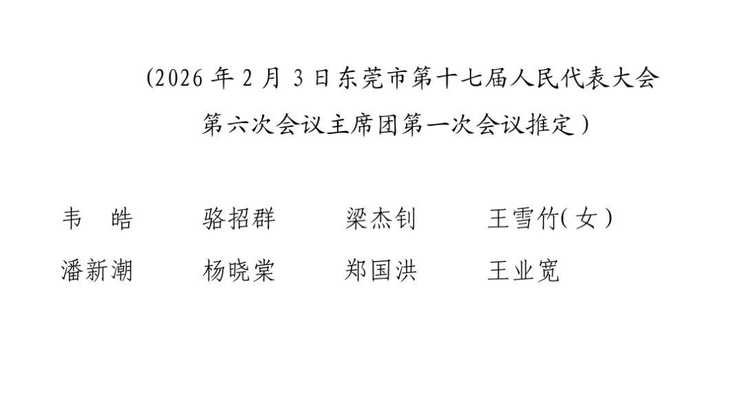>东莞市第十七届人民代表大会第六次会议主席团常务主席名单