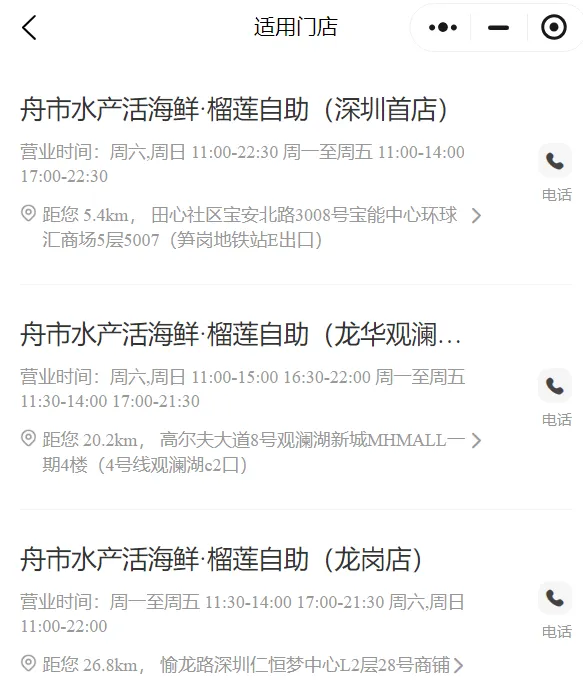 舟市水产活海鲜·榴莲自助深圳3店可用