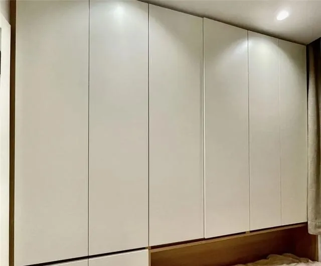 床尾那面大柜子,收纳了一家四口大部分的衣物,你注意到没有?床铺还掏空了一部分延伸到柜体里,这样睡觉的时候空间就显得宽敞多了,这些"偷空间"的小心思,真的让人拍案叫绝!