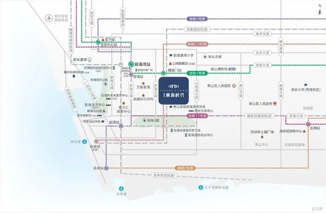 深铁前海时代总都中心邻近地铁1号线鲤鱼门站、毗邻深铁前海国际枢纽中心(在建),海陆空轨多维交通,畅联湾区城际、通达全球主要城市。
