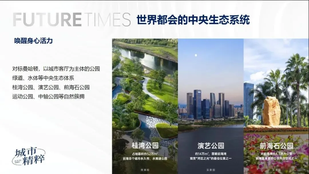 桂湾公园、前海石公园、前海运动公园、前海演艺公园等。