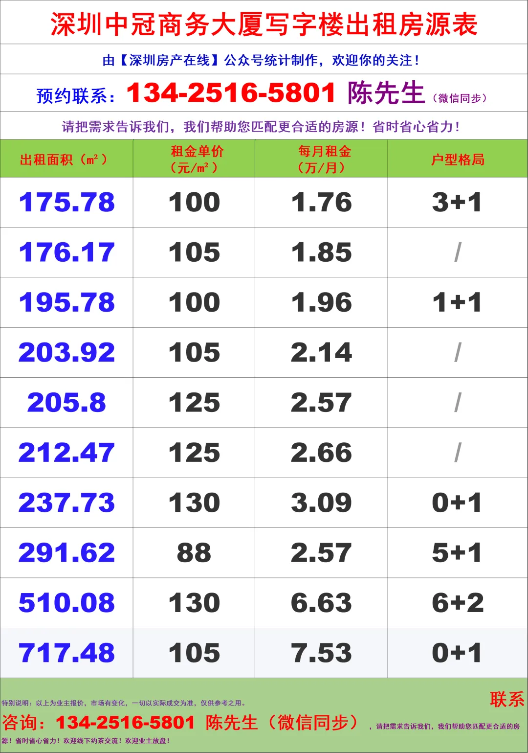 特别说明:市场有变化,以上房源数据仅供参考之用,一切以实际成交数据为准,预约看房敬请联系:【深圳房产在线】陈经理团队:134-2516-5801(微信同步)