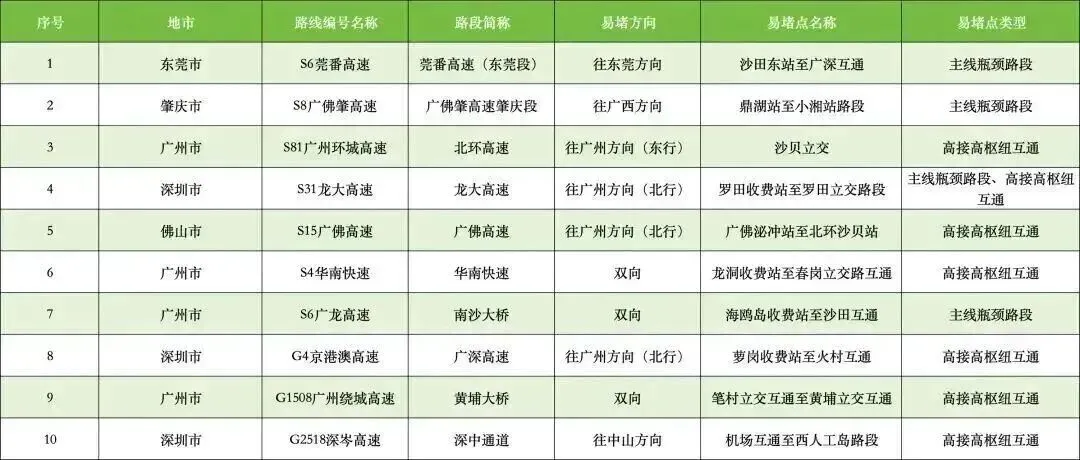 繁忙高速路段10处