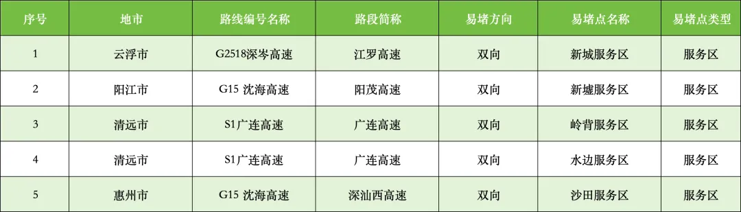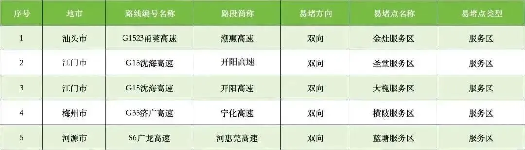 繁忙服务区5处