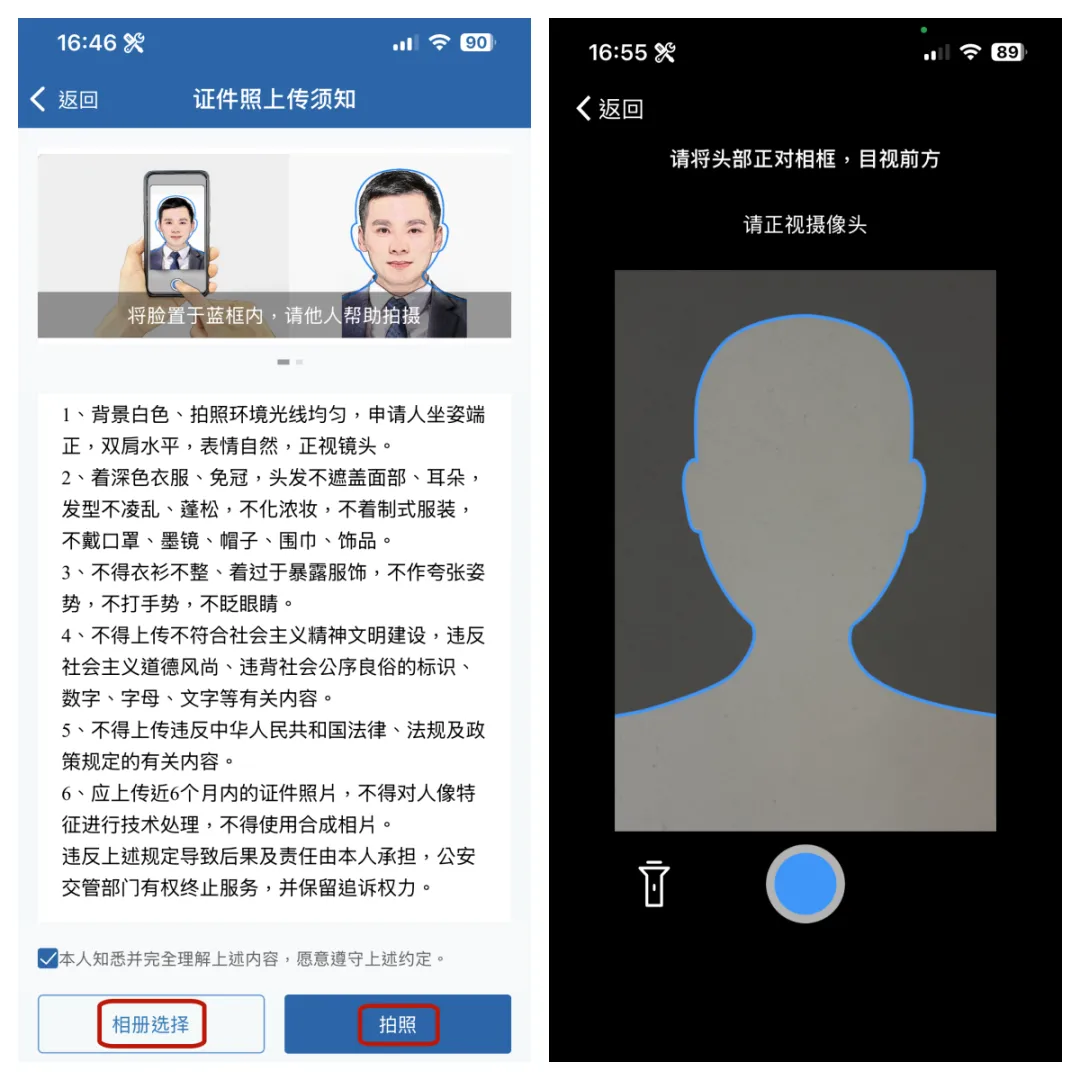 注意:上传的证件照片应为近6个月内的照片,如选择拍照请注意拍照时的周围环境及个人着装!