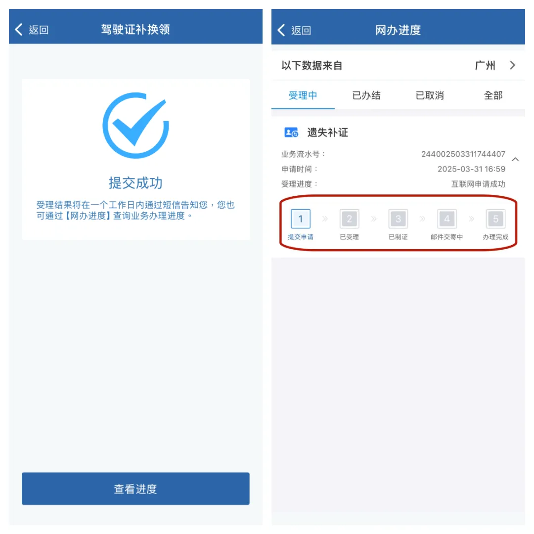 注意:邮寄地址可点击修改,目前广州市尚未开通在线支付,快递员上门送件时收取工本费及邮寄费。