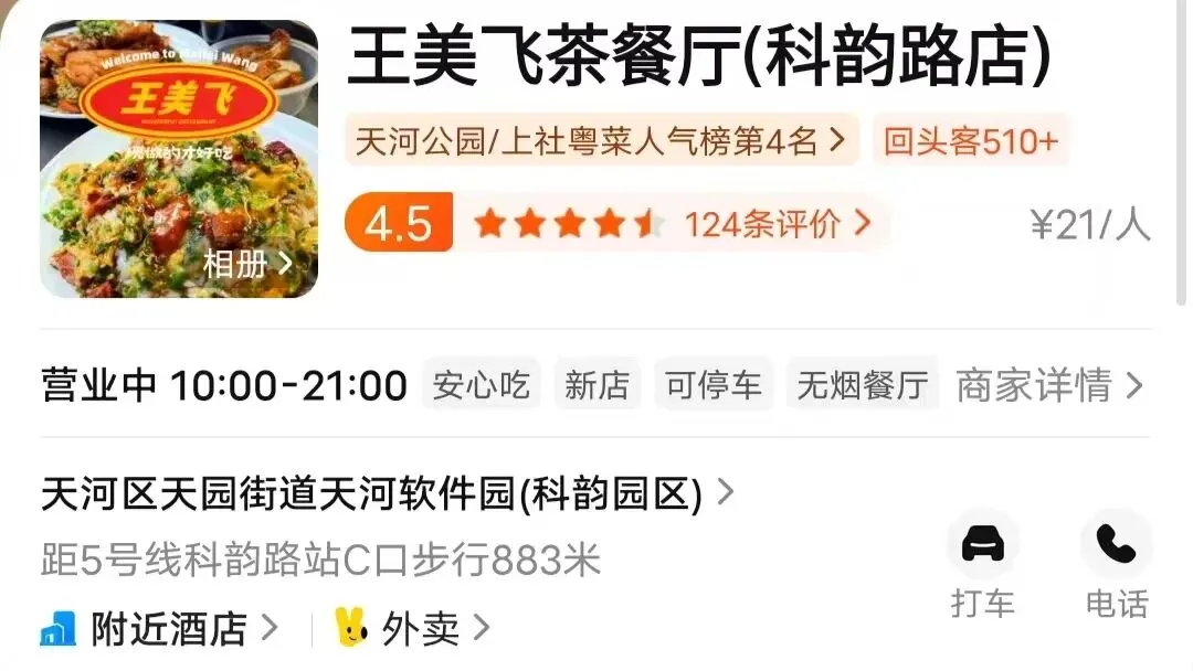 王美飞茶餐厅(科韵路店)