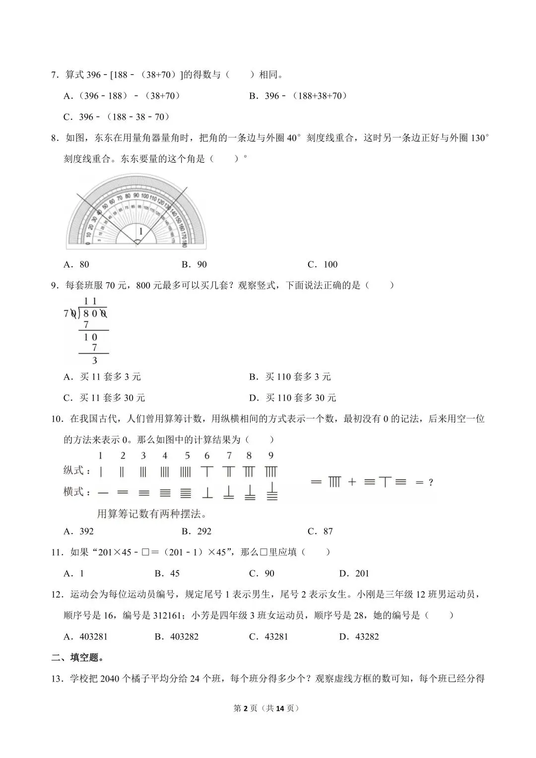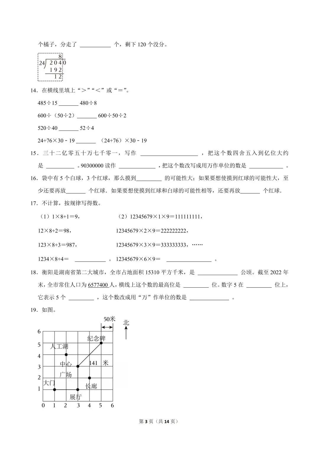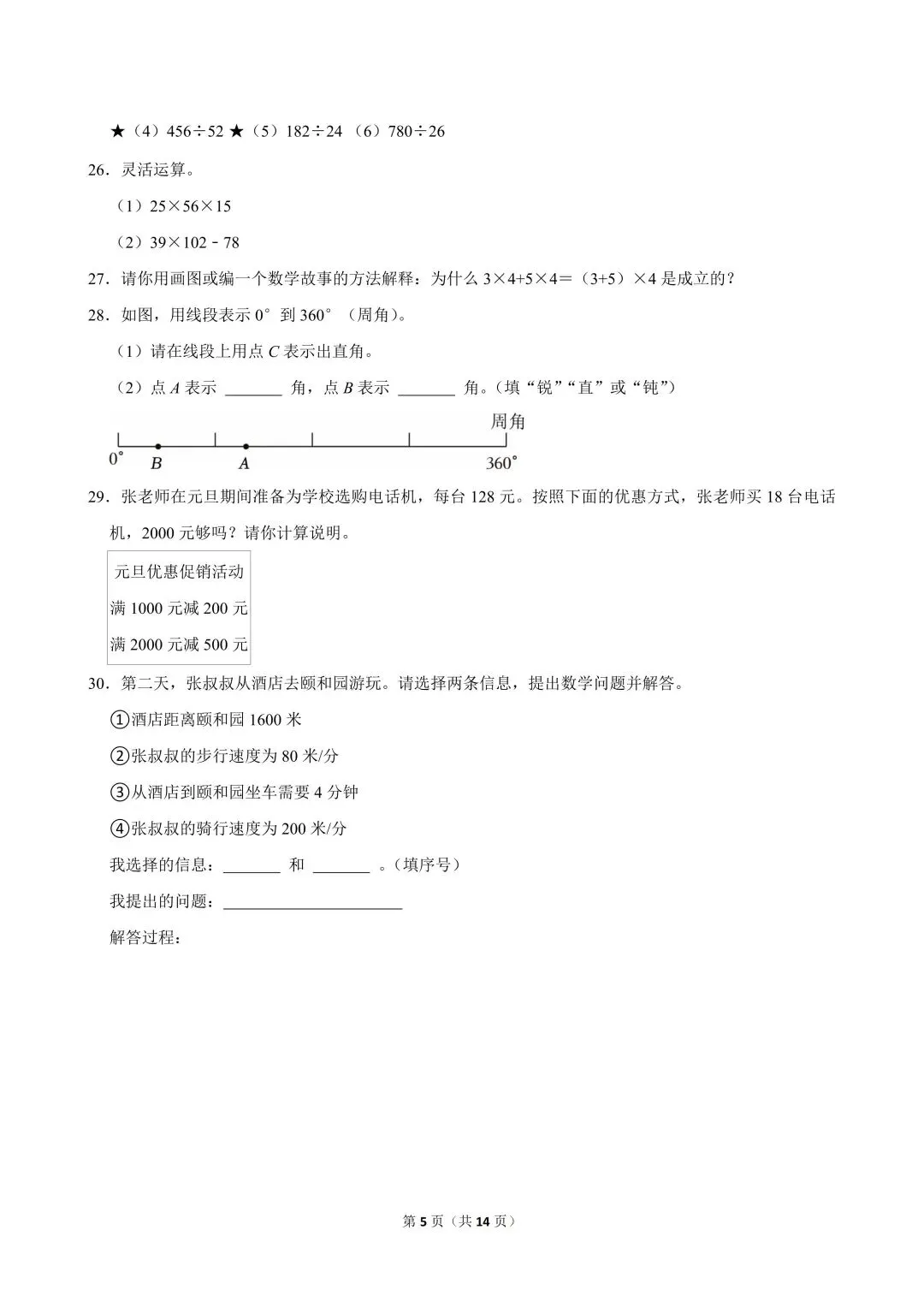 深圳福田区2025-2026学年四年级上学期数学课堂素养练习——期末复习