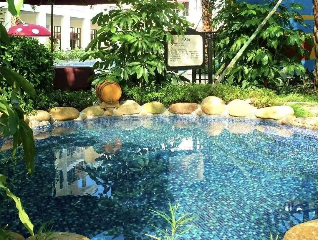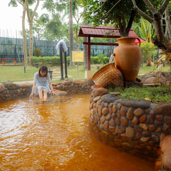 酒店养生泉区共有10个泡池,是一种含氡及多钟元素的珍稀苏打泉,水质晶莹,无色无味。被誉为岭南第一温泉,可与世界名泉媲美。