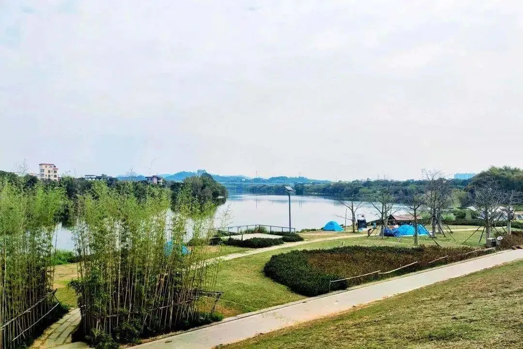 在流溪河旁边有一个湿地公园,酒店走过去不到一分钟。景色怡人,是旅游观光、休闲娱乐的生态主题公园。河堤旁草地上适合各种各样的活动,野餐、露营、垂钓、研学等等。晚上还有许多美食奶茶地摊,简直就是人生享受啊。