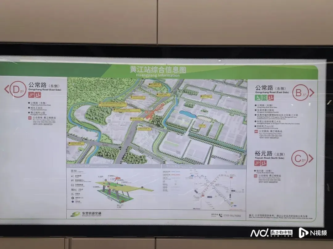 地铁黄江站共设有B、C、D三个站点,但三个出口均设在公常路的同一侧。