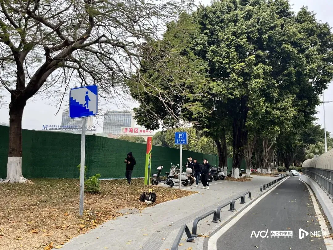 1月23日上午9点多,南都记者来到大朗地铁站D1出口,右手边竖立着一块指示牌,上面显示着“大朗地铁站(公交站)”“非机动车停车位”等标识。