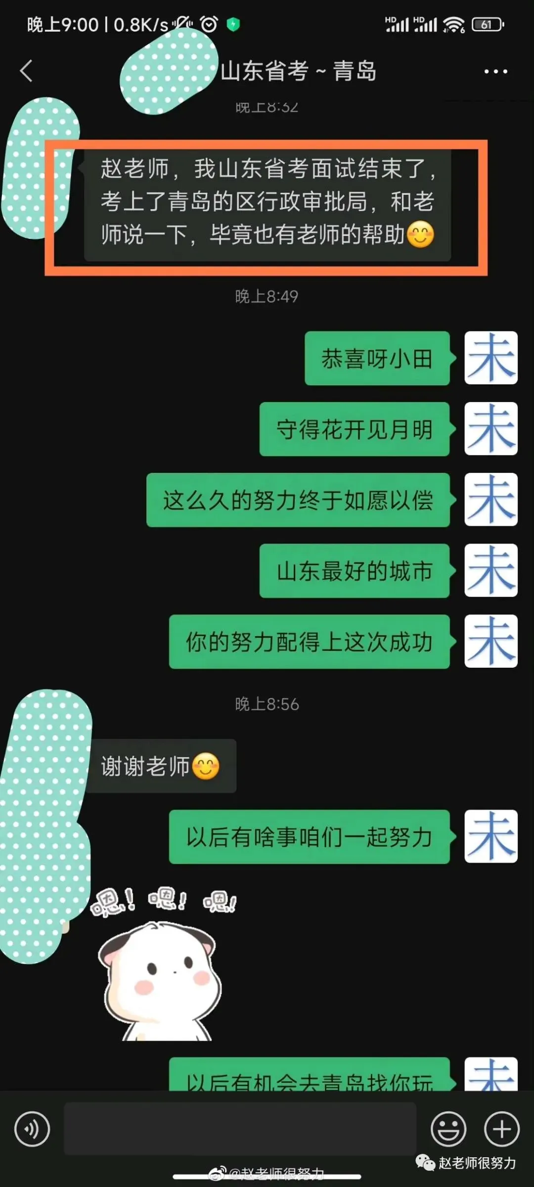 更让人开心的是学生父亲马上60岁生日,上岸是给父亲最好的生日礼物