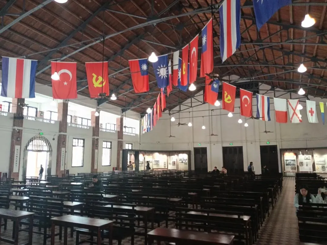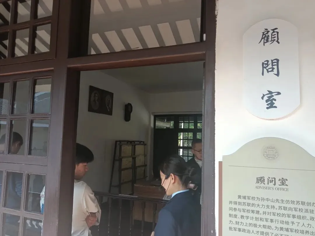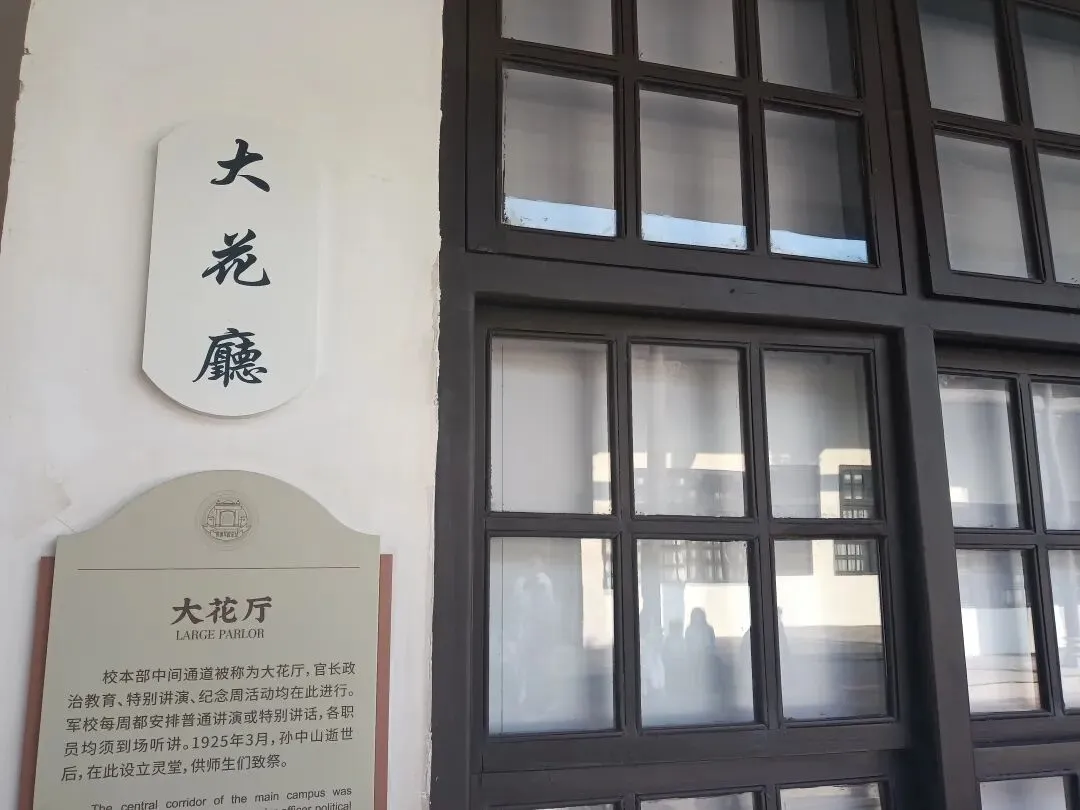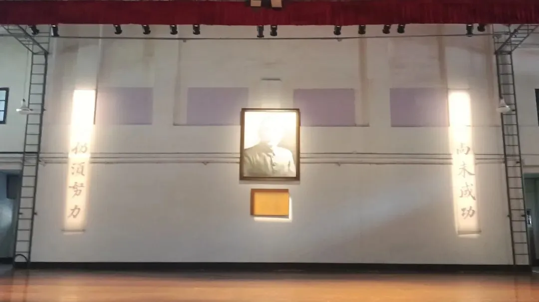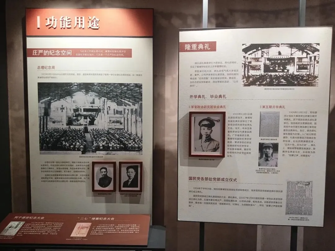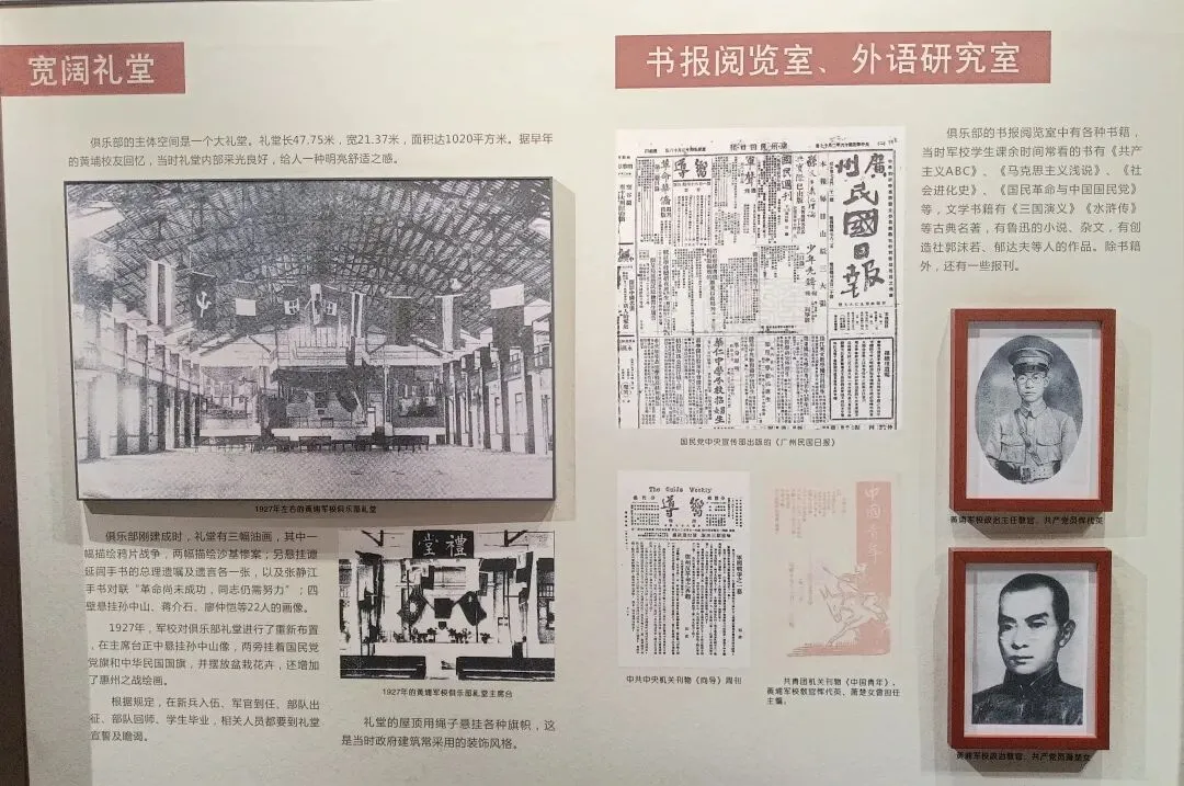 礼堂悬挂廖仲恺、朱执信、史坚如等名人像。黄埔军校当年的“清党”便是在俱乐部举行。