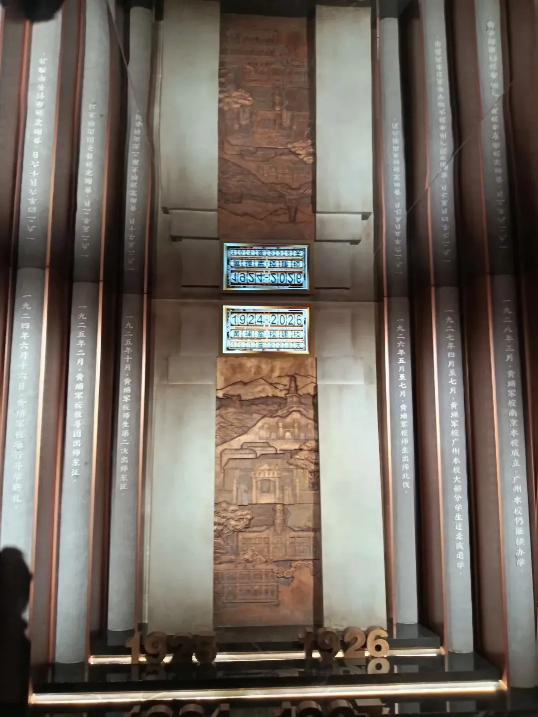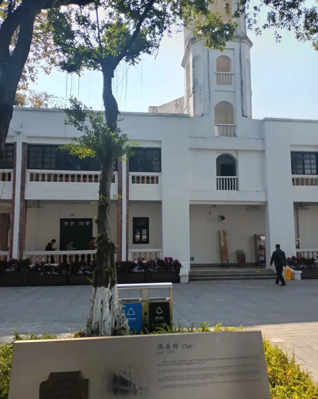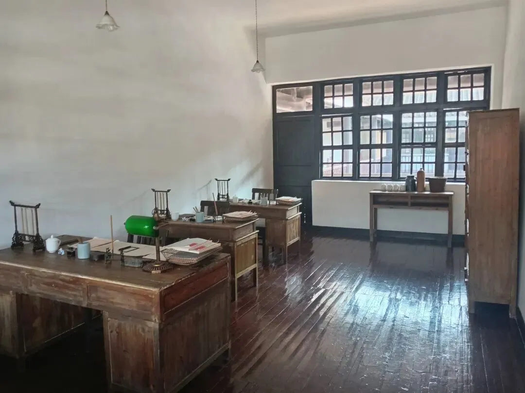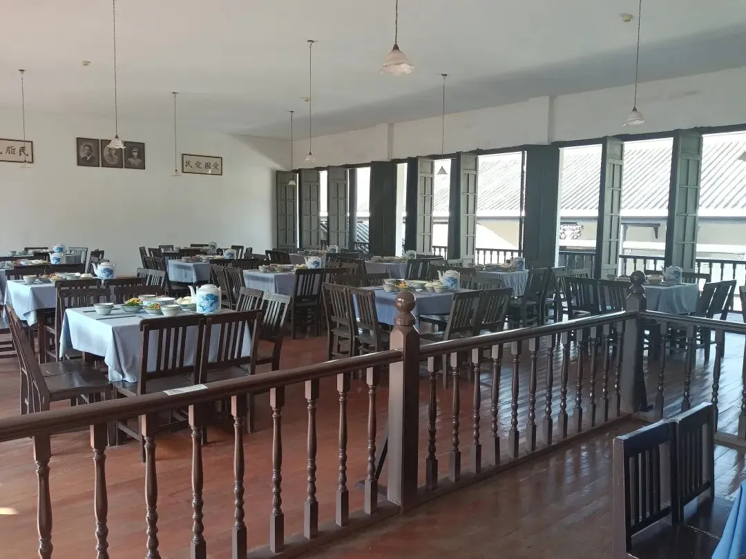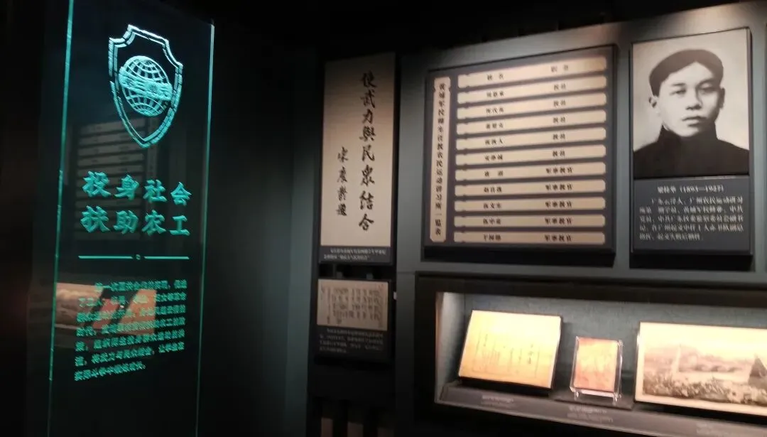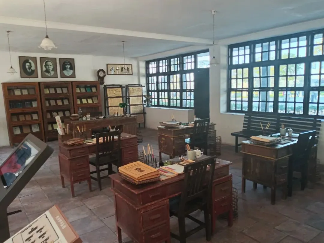 礼堂悬挂廖仲恺、朱执信、史坚如等名人像。黄埔军校当年的“清党”便是在俱乐部举行。