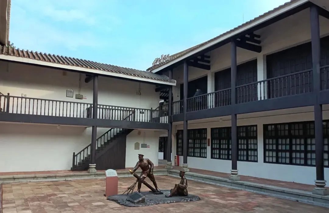 大门内正面校本部,是一座岭南祠堂式四合院建筑,两层砖木结构,三路四进,即三条主要通道,四排房舍。在南北走向的中轴线东西两侧,房舍排列的形式一致,相互对称。四排房子之间以走廊连通,四周有围墙,建筑面积1060平方米。