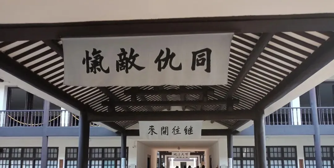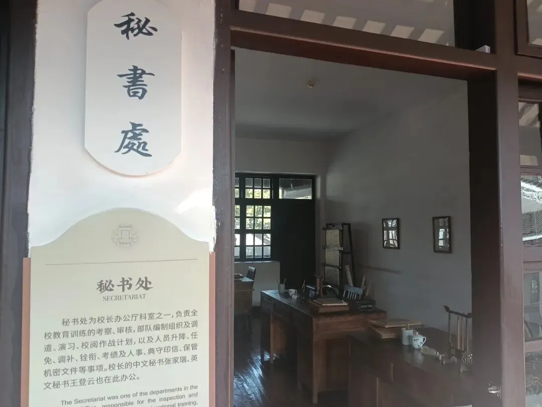 在二门门口挂着一副对联:“杀尽敌人方罢手,完成革命始回头”,二门右侧墙壁上,挂着蒋中正手书的“亲爱精诚”校训。