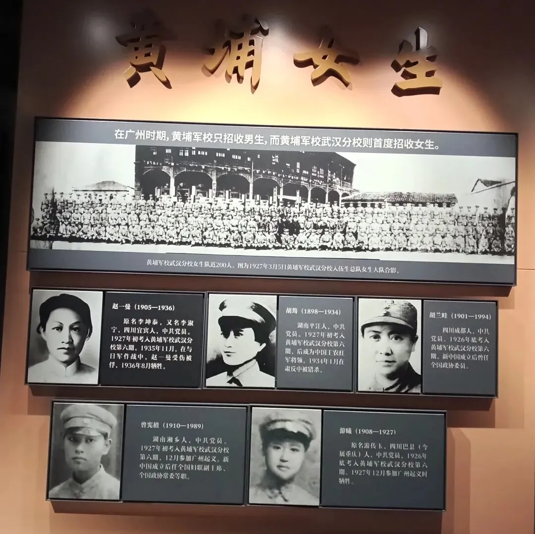 建校之初,不招女兵,直到1927年黄埔军校武汉分校在中国共产党的直接领导下,公开向全国招收女生,200多名中国女兵迈进了黄埔军校的大门。 全校自总理、校长、党代表之下,设政治、教授、教练、管理、军需、军医六部,机构总数约40个,还设有学员宿舍、饭堂、展览室等。