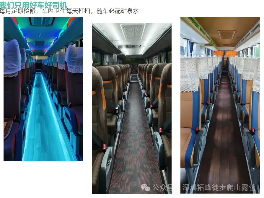 提醒声明:武功山大巴汽车团(座位,只可侧躺)可能会让初次徒步的你感到腰酸背痛,请做好良好心理准备,如有抱怨,请酌情报名