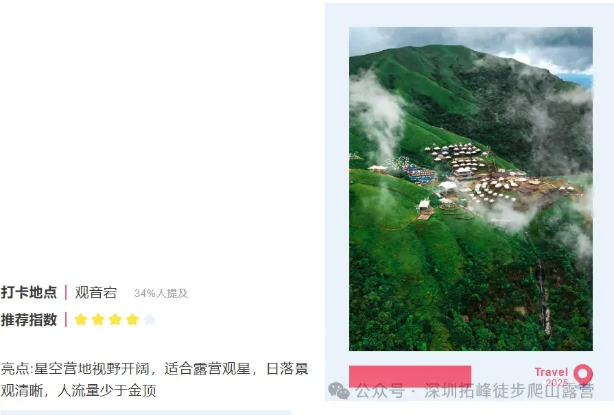 ✅ 搭子旅行超快乐:拒绝独自徒步!和一群有趣的灵魂组队,山顶狼人杀、星空下聊天,社恐也能秒变社牛,主打一个 “山不见我,我自见山” 的治愈感~