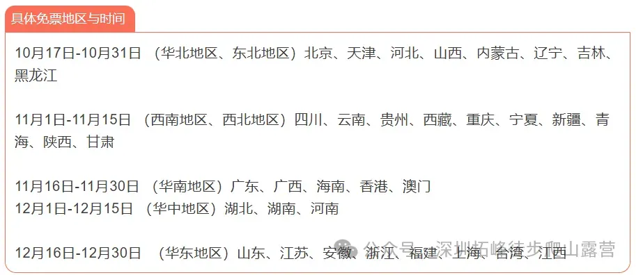 其他地区错峰免票,详情见文中时间表,省钱攻略 get√