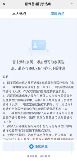 家长还可以为年龄未满14岁的子女办理家属选点,最多可添加2名家属。在选点界面选择“家属选点”,填写子女信息后即可代为选点。