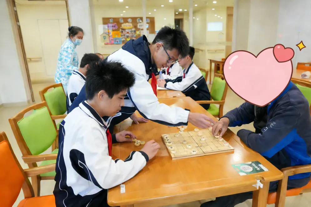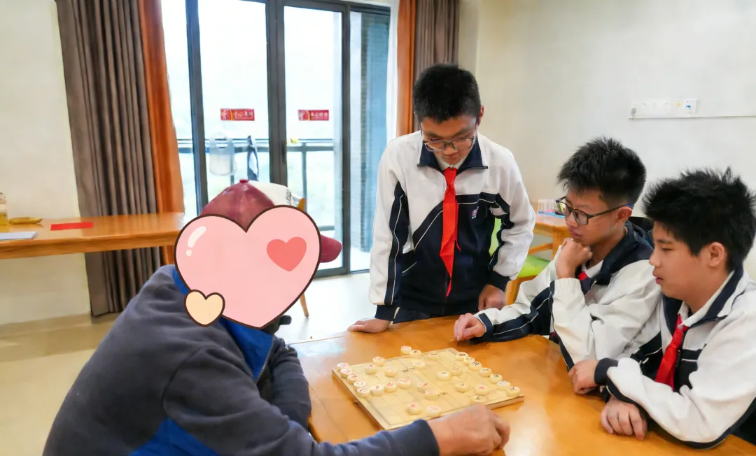 “爷爷喜欢下棋,哪位同学会下棋”,“我来”!同学们根据爷爷的需求,立马换了陪伴方式,楚河汉界之上,老少对弈,妙趣横生。同学们时而为一步好棋欢呼,时而为不慎失误懊恼,长者们则耐心指导,分享下棋技巧,活动室里满是欢声笑语。从一开始的小心翼翼“挑战”,到后来的畅所欲言交流,棋盘成了跨越年龄的桥梁,让陌生迅速变成了熟络。