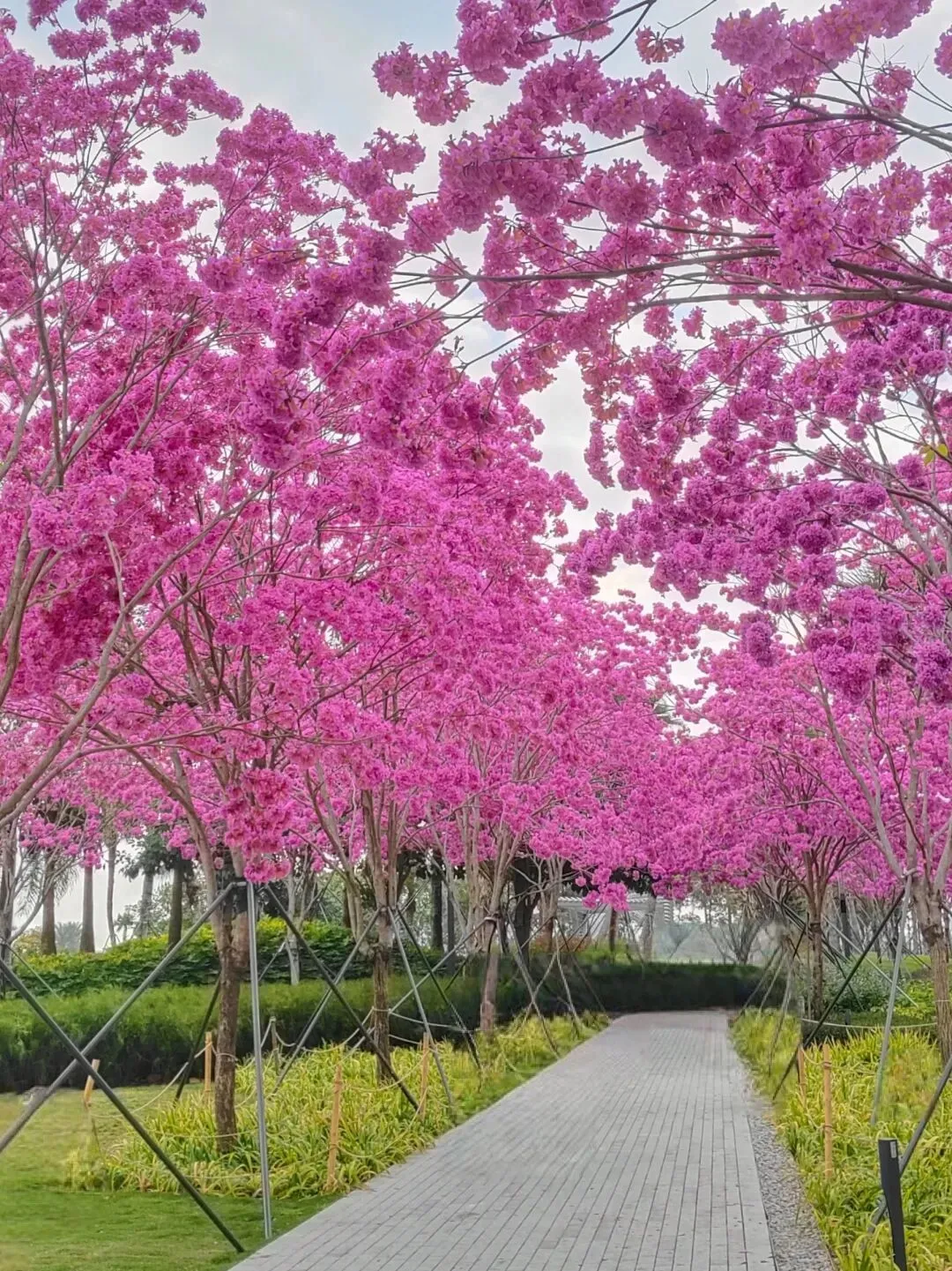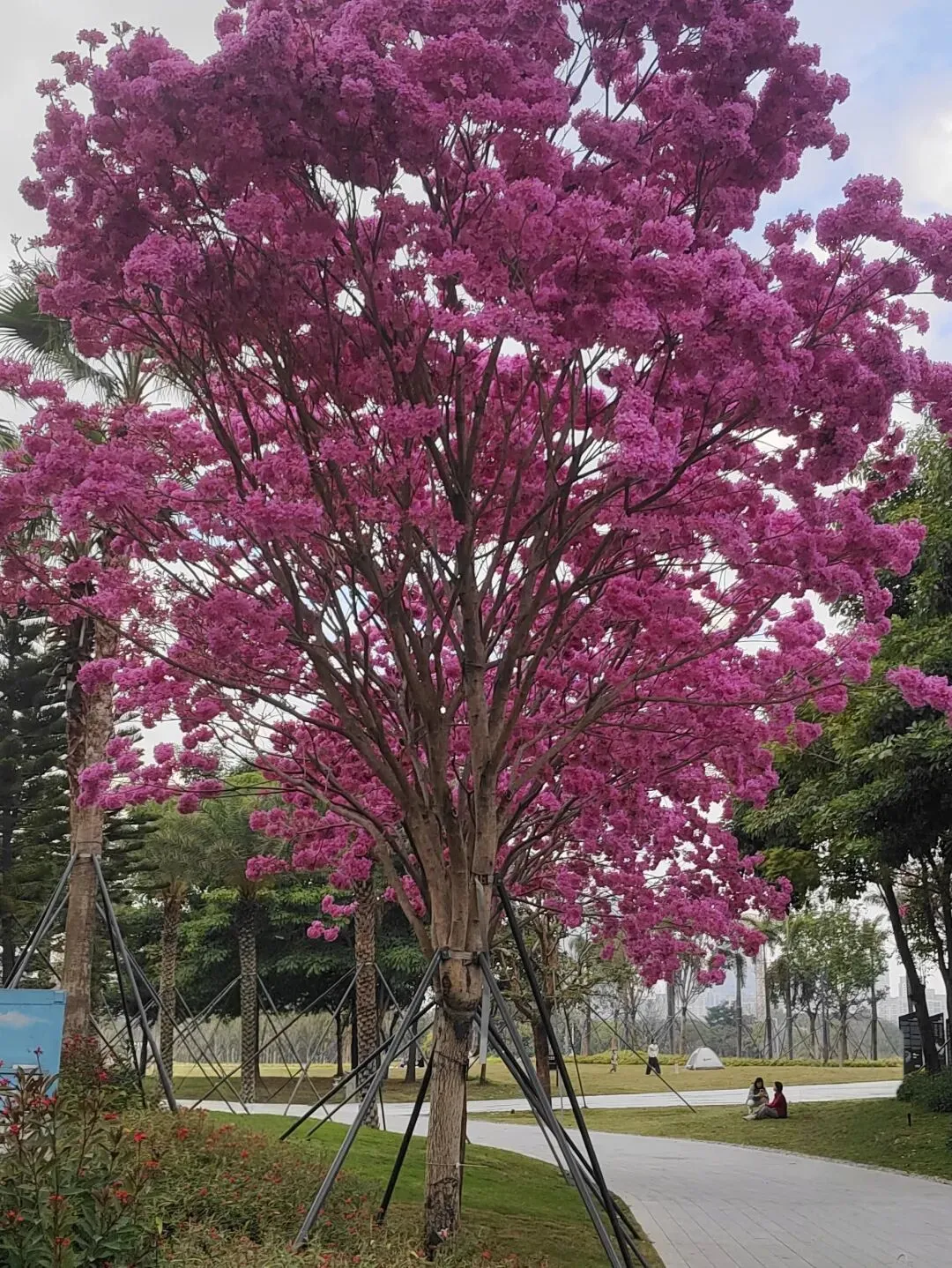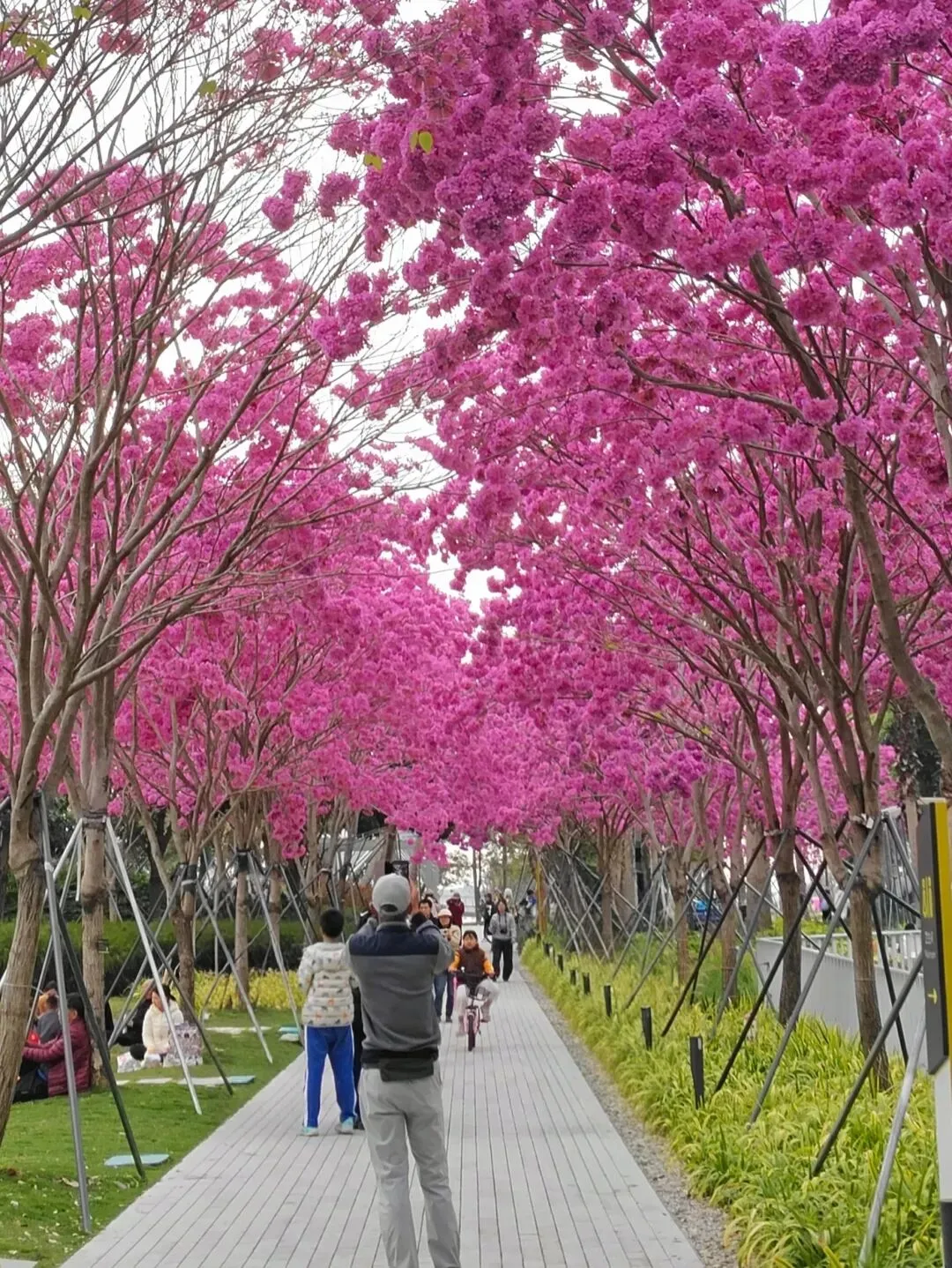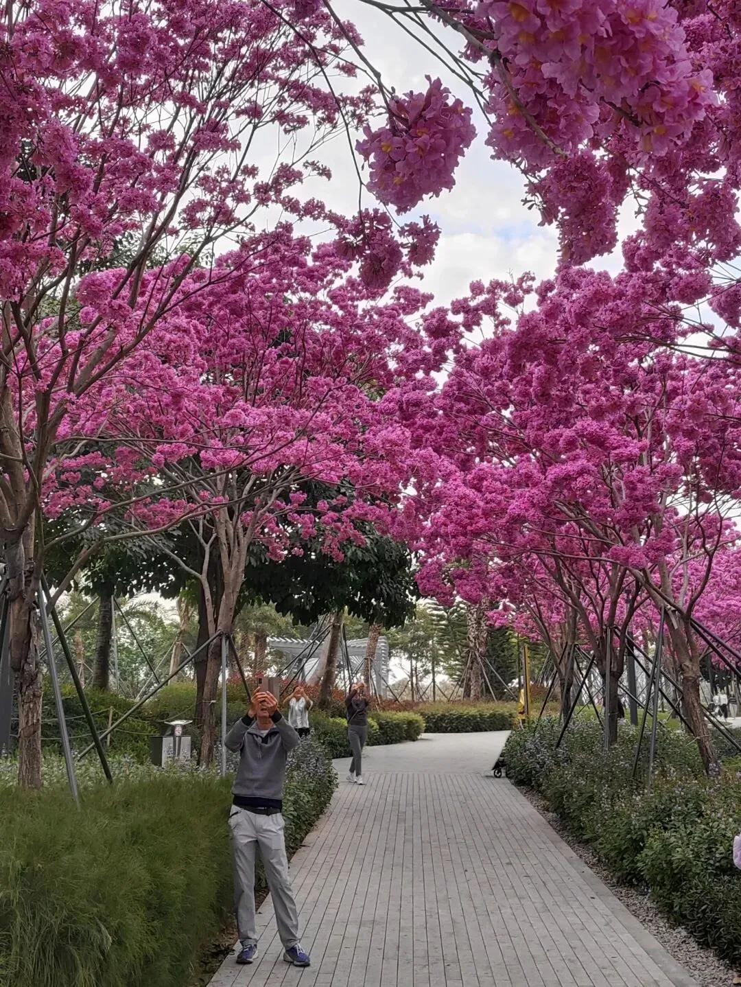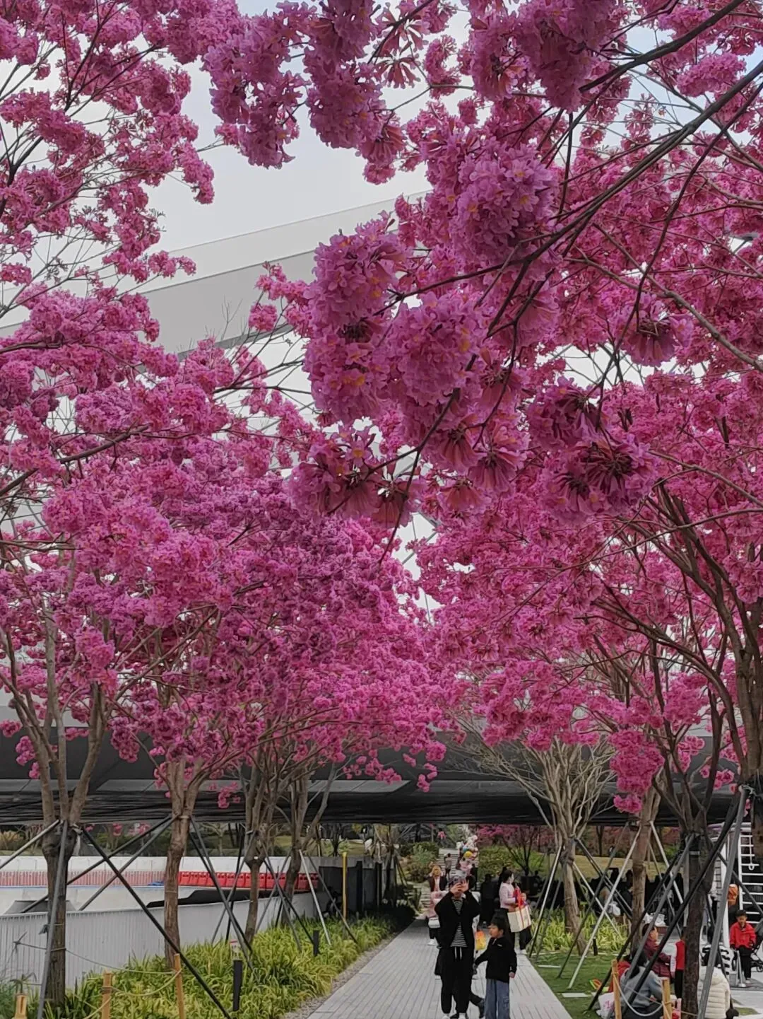 当春天已来临,深圳的紫花风铃木愈发更美,桂湾公园的紫花风铃木己是全盛绽放期。笔挺的树干开满密密密麻麻的花蕊。美得让人窒息。图片拍摄于2月4日的桂湾公园,紫花风铃木全都到了盛花期,满树都开满花,有的树枝都往下坠,美得非常震撼🌼花下都是举着相机,抬着头拍照的市民游客,尽量错开高峰期前往。☘️最佳时间:工作日人少,建议上午10:00点前,或下午16:00后前往,光线柔和。