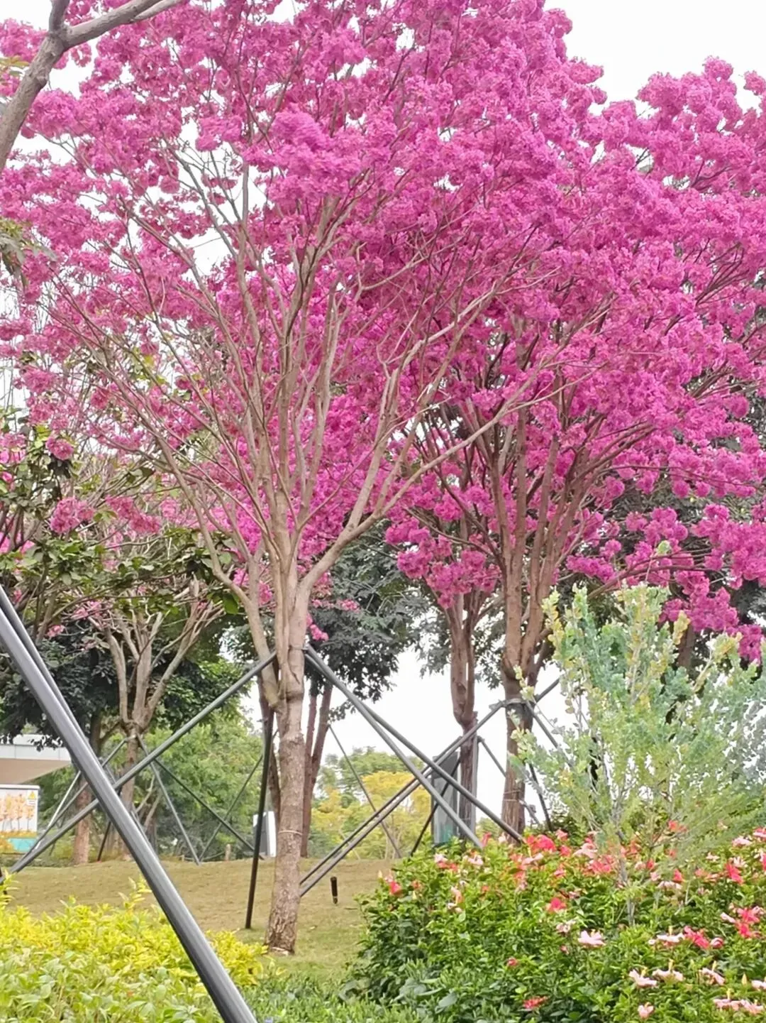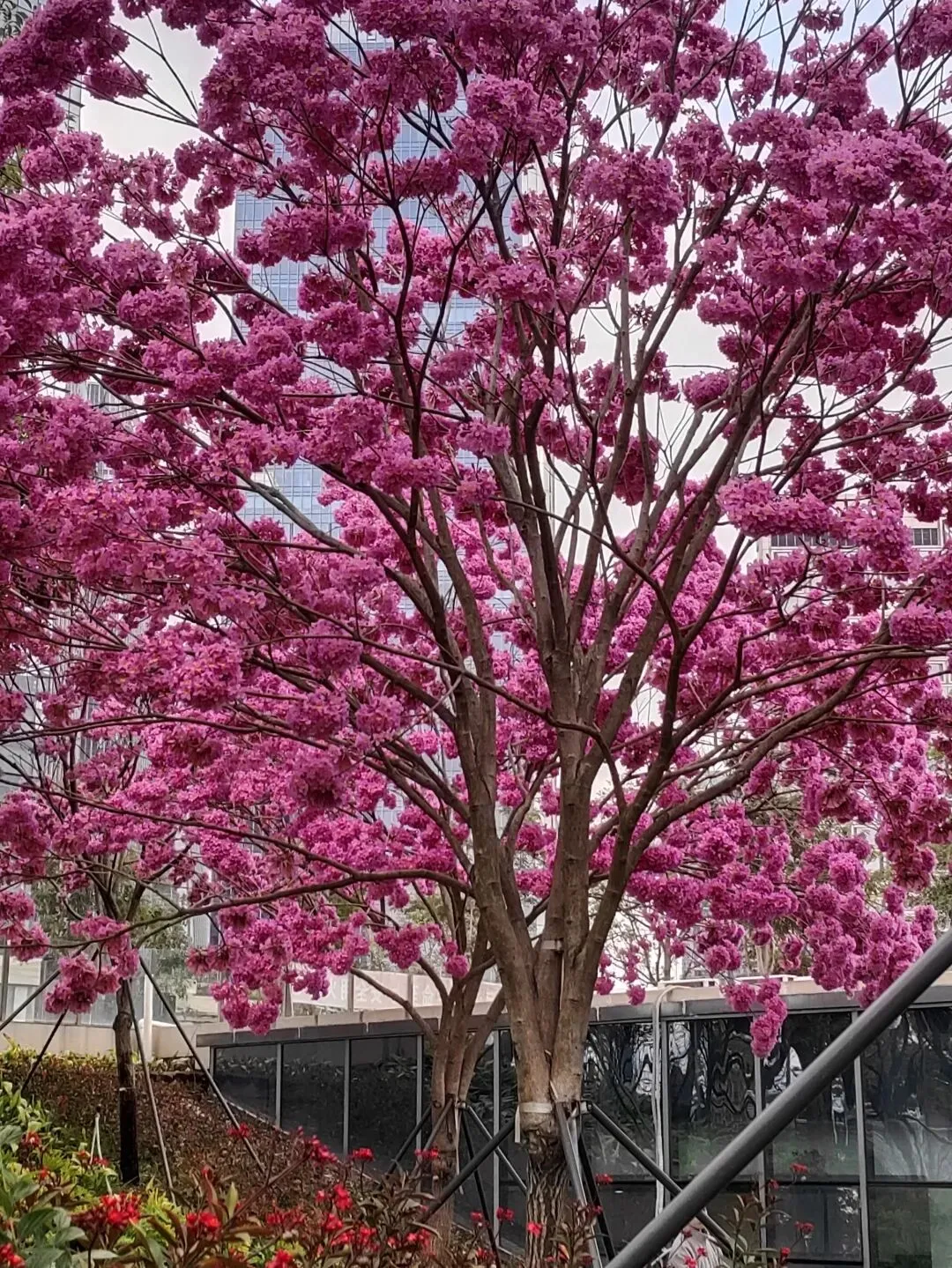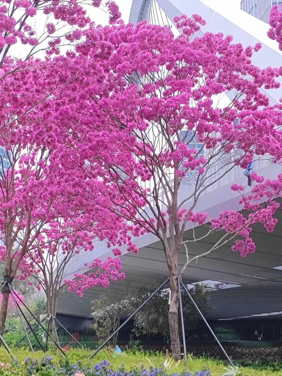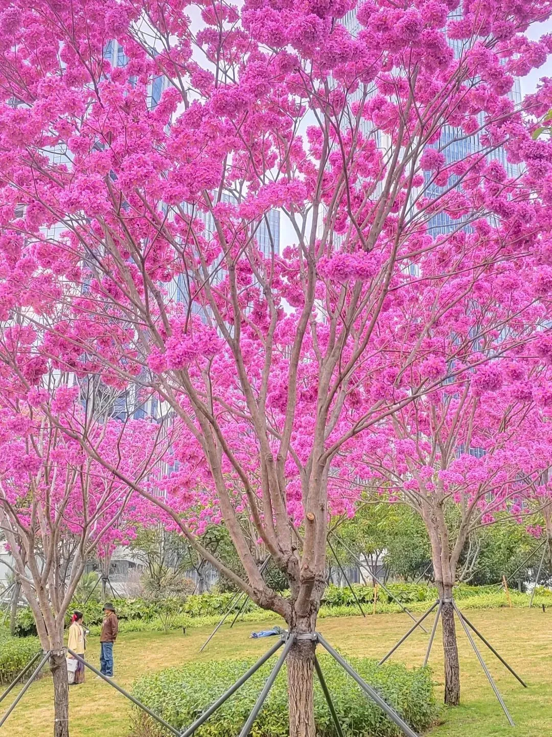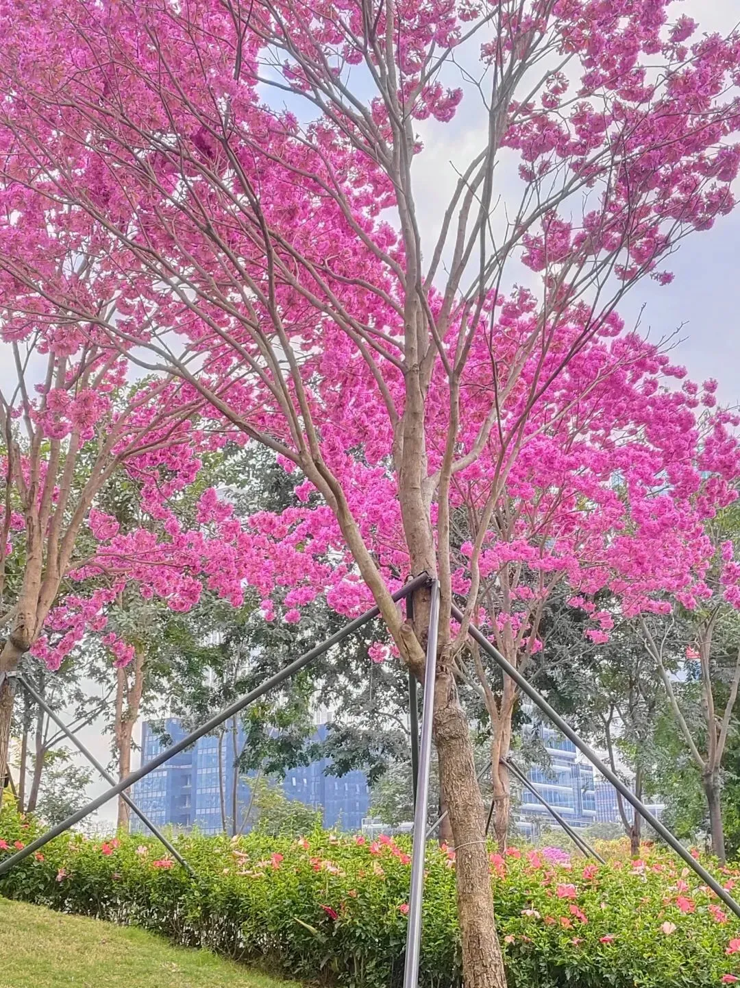 当春天已来临,深圳的紫花风铃木愈发更美,桂湾公园的紫花风铃木己是全盛绽放期。笔挺的树干开满密密密麻麻的花蕊。美得让人窒息。图片拍摄于2月4日的桂湾公园,紫花风铃木全都到了盛花期,满树都开满花,有的树枝都往下坠,美得非常震撼🌼花下都是举着相机,抬着头拍照的市民游客,尽量错开高峰期前往。☘️最佳时间:工作日人少,建议上午10:00点前,或下午16:00后前往,光线柔和。