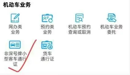 选择机动车业务中的“申请通行证(非深号牌小型客车)”;