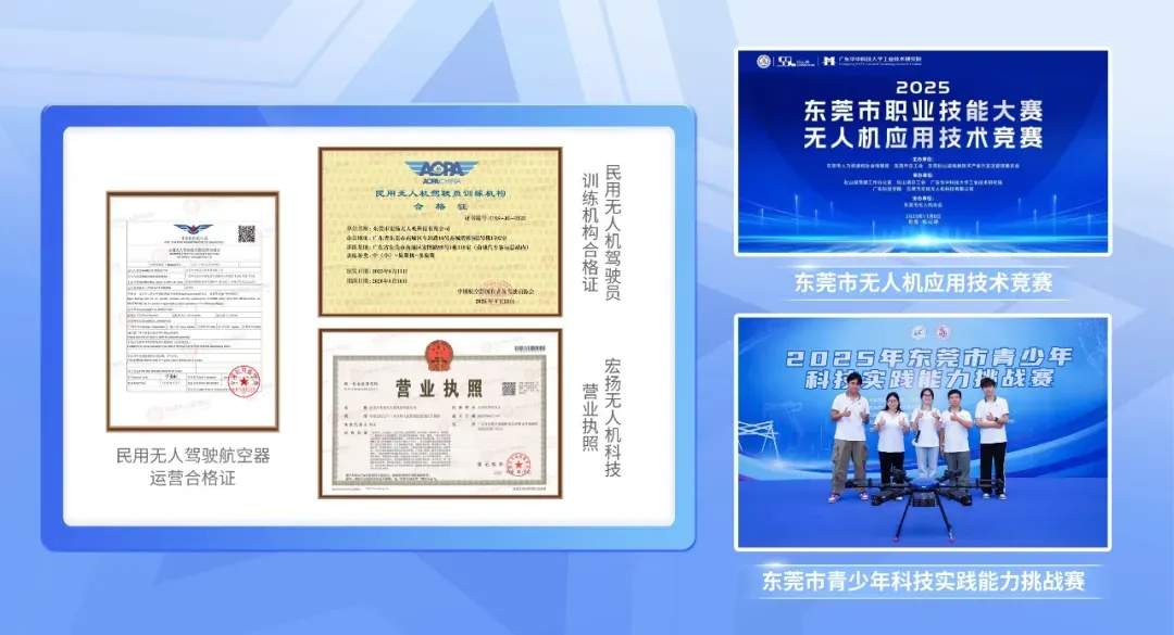 宏扬无人机承继宏扬教育集团十八年教育底蕴,秉持“真学历、真技能、真教育”理念,深刻发挥“教培+产业”优势,以扎实的培训服务助力东莞低空经济安全健康发展,培育更多能堪重任的低空领域专业人才。CAAC(中国民用航空局)指定的培训机构,宏扬无人机科技拥有专业的师资团队和完善的培训设施。其培训课程严格按照CAAC的标准和要求进行设置。400余平米的办公区和超过5000平米的学员实训基地,配备先进的无人机设备和模拟训练器材。设有学员宿舍、学员休息区等完善的生活设施,能满足200名以上学员的培训要求。是目前东莞市为数不多的正规无人机 CAAC 执照培训企业!培训课程涵盖了无人机的基础知识、飞行原理、操控技巧、法规政策、安全知识以及实际应用等多个方面,采用理论与实践相结合的教学方式,让学员们全面系统地掌握无人机技术,为今后的职业发展打下坚实的基础。业内享有高度认可,还凭借其出色的培训成果和服务质量,荣获了多项资质荣誉、承办多项无人机白名单赛事,这些都是对宏扬无人机科技在无人机教育领域所做贡献的肯定!— 专属学历平台,碎片化学习 —