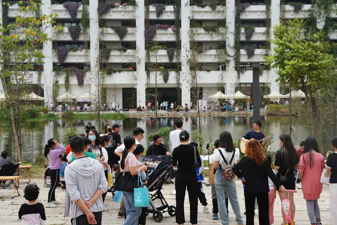 #泰华梧桐村位于深圳宝安中心区(壹方城对面),是泰华集团打造的低密度生态办公社区。项目以8000㎡景观湖为核心,8栋建筑环绕布局,外墙覆盖垂直绿植,融合办公、文创市集、公寓及商业配套,形成“自然与城市共生”的村落式生态圈。园区采用雨水回收系统、灰泥灰塑非遗工艺及智能办公技术,吸引科技、传媒、设计等37家企业入驻,被誉为“宝中绿岛”