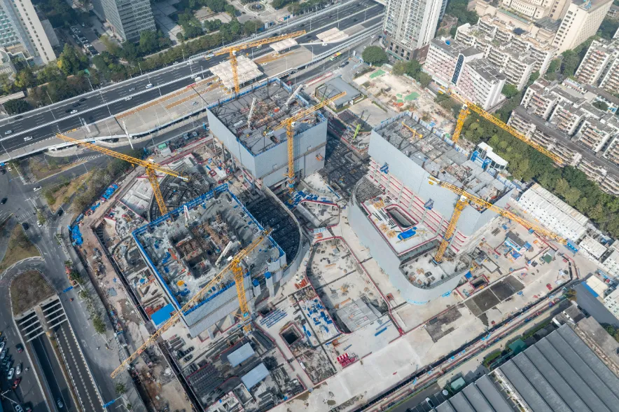 目前,项目正在全面推进主体结构施工,西侧三栋塔楼最高已施工至14层,今年项目将实现160米T3塔楼主体结构封顶。