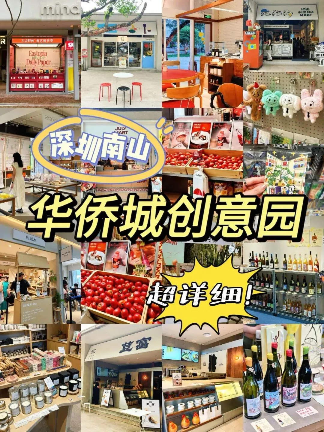📍 详细地址:南山区锦绣北街2号(华侨城创意文化园内,导航直达)⏰ 开放时间:24小时开放(部分店铺10:00-22:00,市集多为11:00-20:00,建议白天前往,逛吃拍更从容)🎭 必逛亮点|SMOO MARKET 小众市集,惊喜拉满