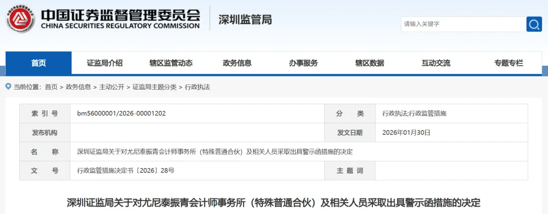 根据《上市公司信息披露管理办法》(证监会令第182号)第五十五条、《上市公司信息披露管理办法》(证监会令第226号)第五十六条的规定,我局决定对你所及张某某、徐某、石某、张某、李某采取出具警示函的监督管理措施,并记入证券期货市场诚信档案。你们应严格遵照相关法律法规和中国注册会计师执业准则的规定,及时采取措施完善内部治理体系,健全质量控制制度,加强独立性管理,提高审计执业质量。你们应当在收到本决定书之日起30日内向我局提交书面整改报告。