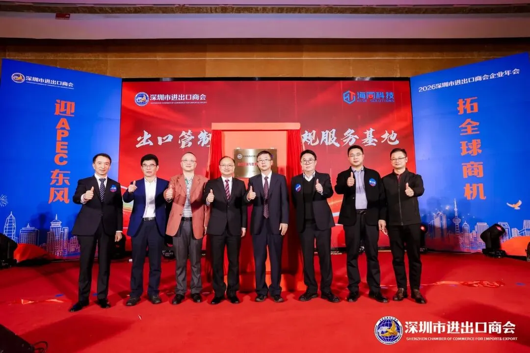 2026年1月28日,由深圳市进出口商会与北京海同科技有限公司共同设立的“出口管制与贸易合规服务基地”启动仪式在深圳市福田区成功举行。深圳市工商联、福田区工商联、福田区企业服务中心、广东高科技产业商会、深圳市进出口商会、深圳市国际税收研究会、北京海同科技有限公司等领导和代表共同出席揭牌仪式。该基地的成立标志着双方在推动外贸企业合规体系建设、应对国际经贸规则变化方面迈出关键一步,旨在为粤港澳大湾区的外贸企业提供专业化、系统化的出口管制与贸易合规综合服务,护航企业高质量“走出去”。