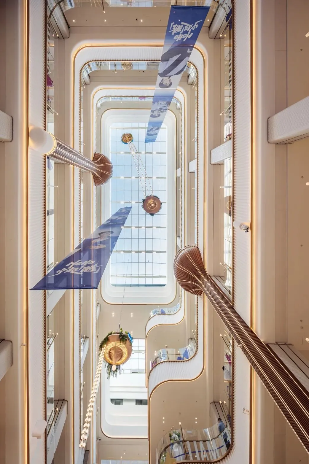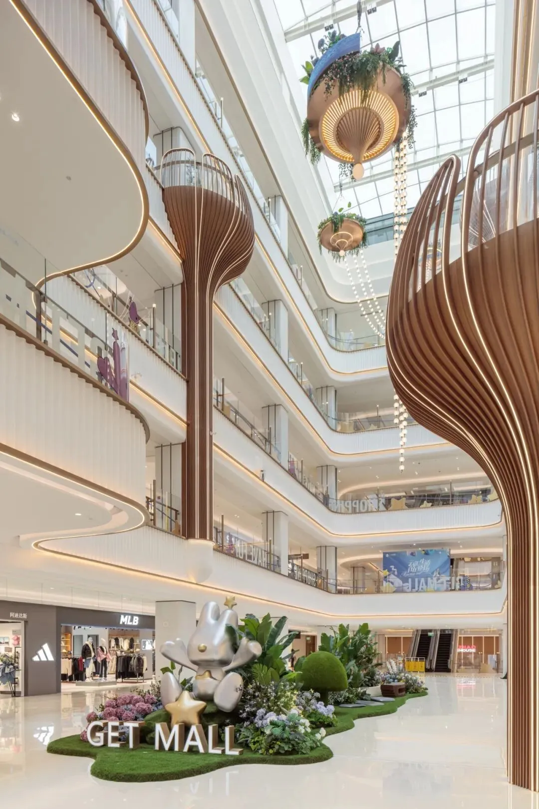 保留的玻璃天顶经节能改造,在保障自然采光的同时,增设形态舒展的“空中绿岛”,其柔美线条与建筑结构形成对比,成为视觉焦点与引导要素。