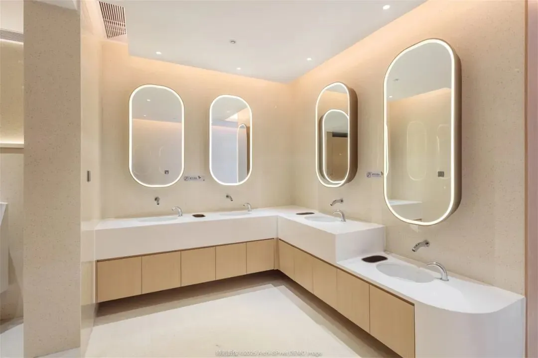 卫生间在满足功能与标准的基础上,以“无界绿谷”的整体叙事为背景,增设特色主题场景。