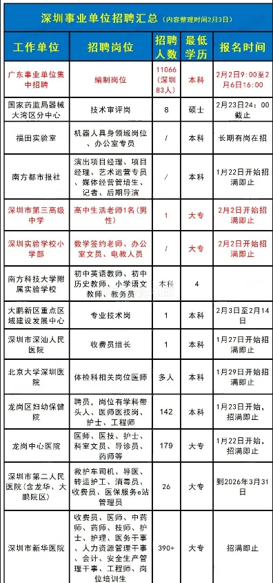 报名时间:未公布报名截止时间,应该是招满即止。公告是2月2日发布的,有说明是急招岗位