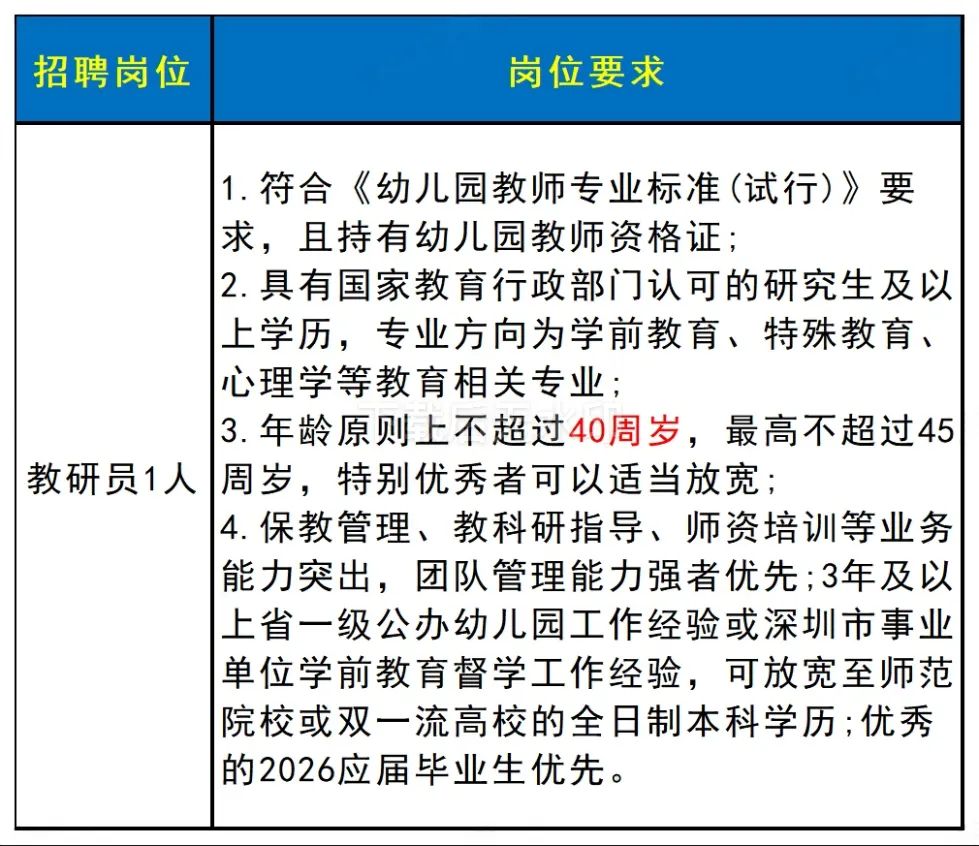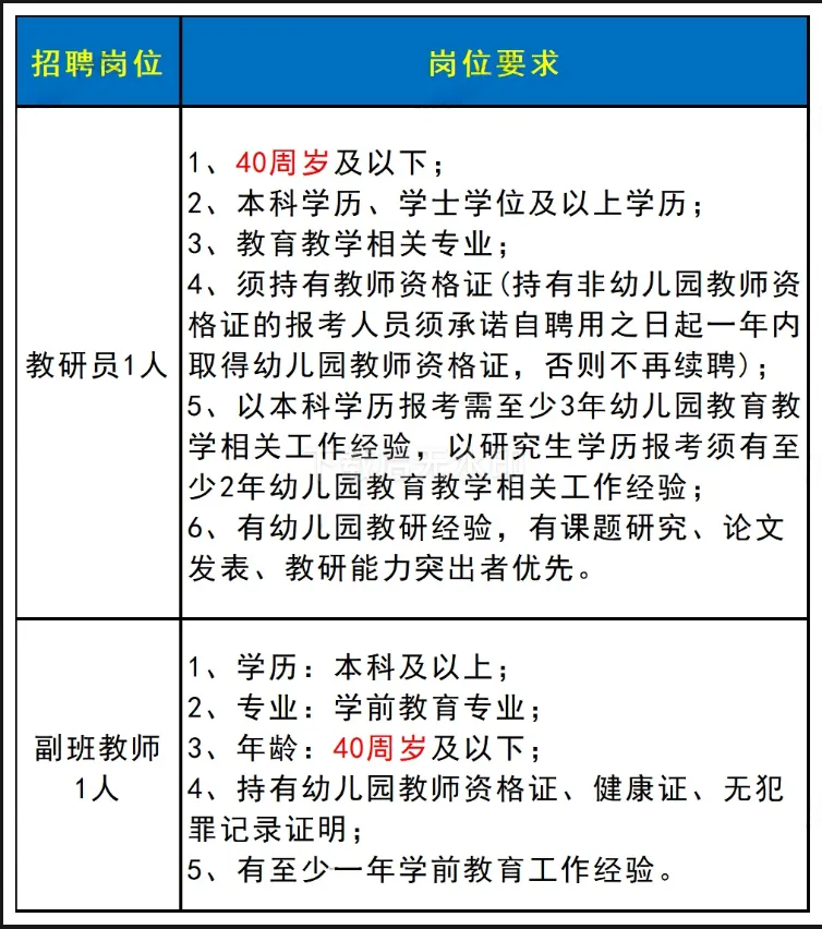 ✅招聘岗位:教研员1人、配班教师1人,具体要求如下图所示