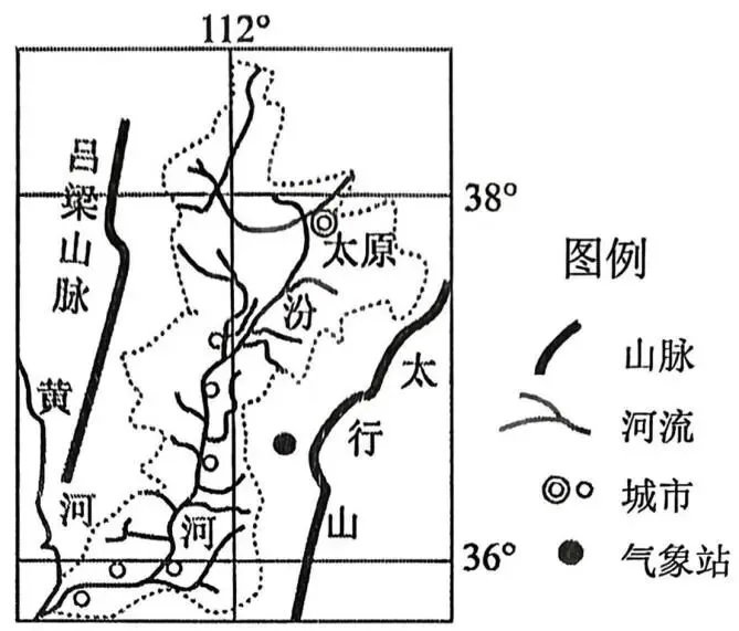 山谷风是出现于山地及周边地区,风向具有日周期变化的地方性风。山谷风在背景风(大尺度区域内的大气水平运动)较弱时表现明显。汾河谷地山谷风变化明显。下图示意我国汾河流域。据此完成下面小题。