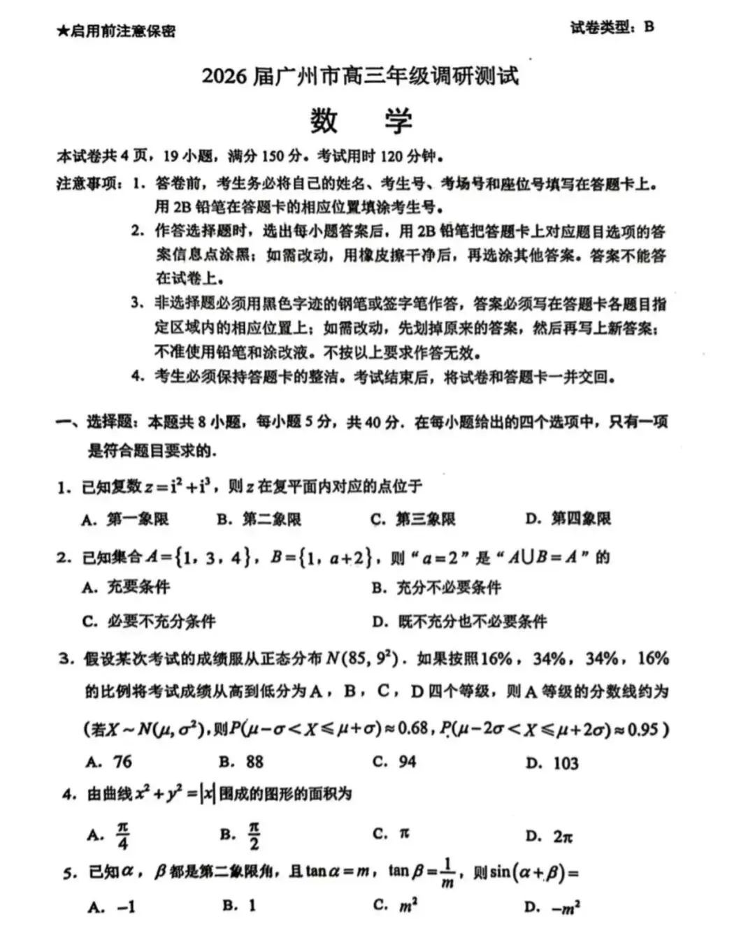 可打印!广州2026届高三12月调研考(广州零模)电子版下载!