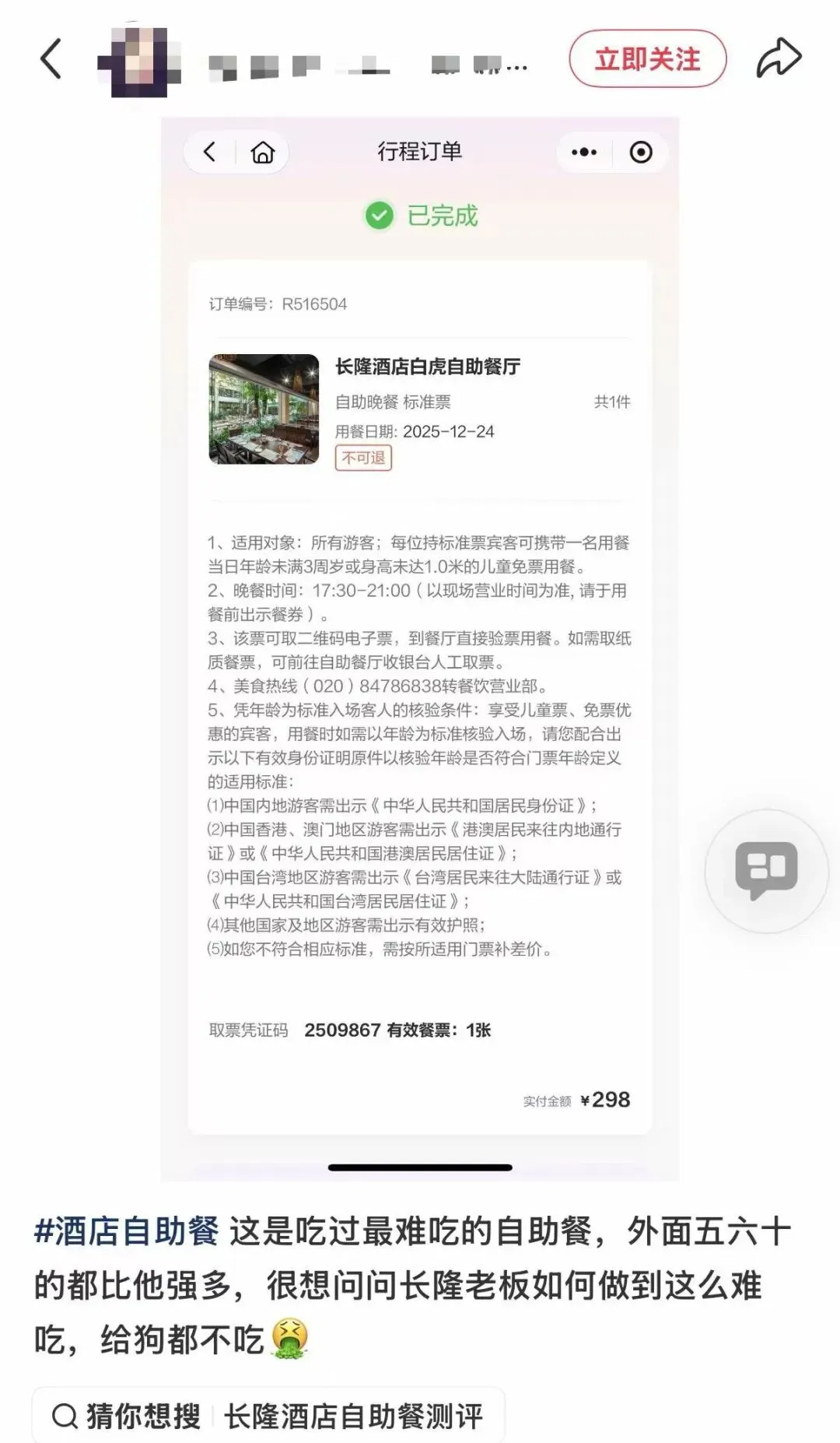 之前我攻略里还说过长隆酒店白虎自助餐厅的问题: