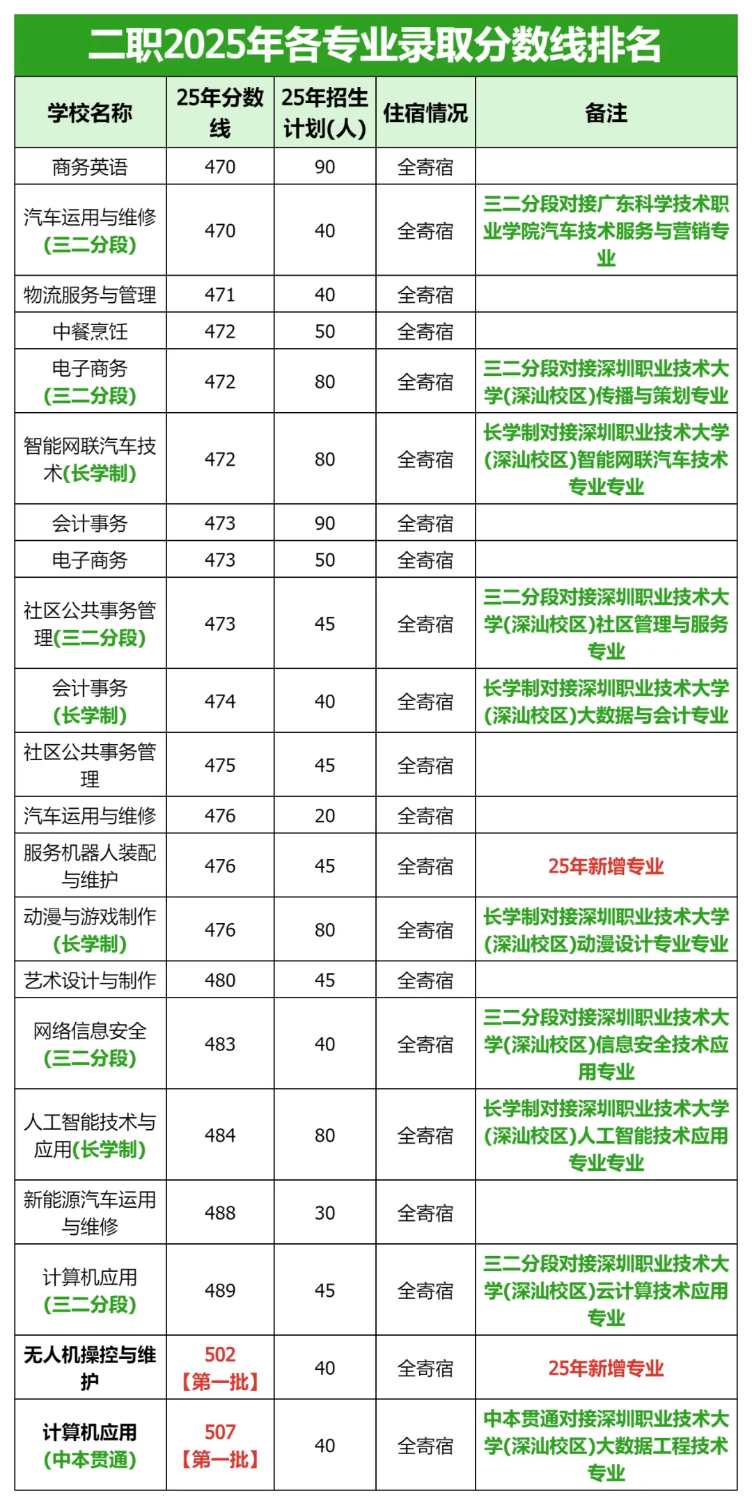 | 计算机应用 | 国家示范校重点建设专业、三二分段对接深圳职业技术大学云计算技术应用专业、中本贯通试点专业(对接深圳职业技术大学) |