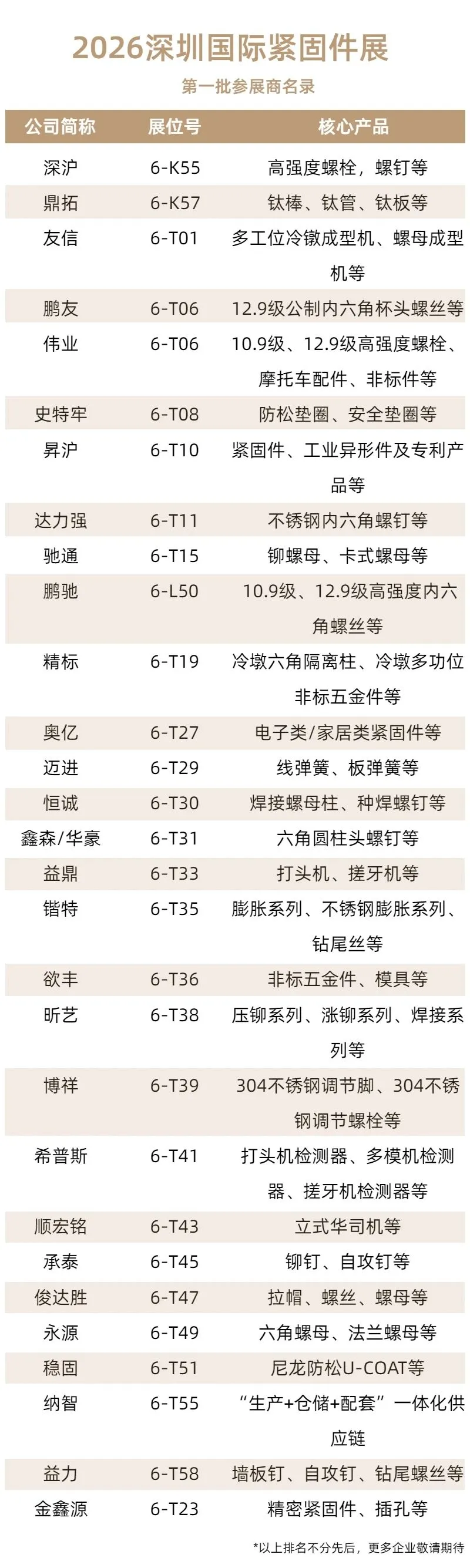 当前位置:首页>深圳>速览!2026深圳紧固件展参展商名录(第一批)已公布