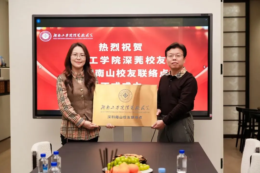 2026年1月28日,湖南工学院深莞校友会“深圳南山校友联络点”授牌仪式在深圳悦境建设工程有限公司举办。深圳南山校友联络点是继东莞道滘、深圳龙岗、龙华之后,深莞校友会颁发的第四家“一级校友联络点”。接下来将由秘书处联络服务部牵头,分批在东莞清溪、企石、横沥、黄江、谢岗,深圳宝安、光明、宝安等地颁发一级校友联络点牌匾,逐步服务覆盖深圳、东莞及香港全域。