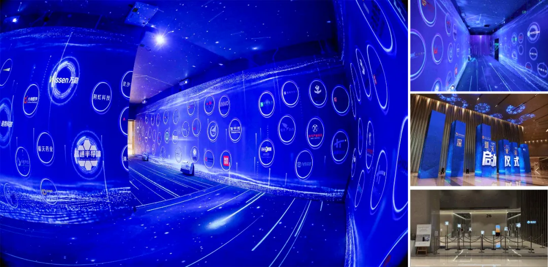 作为开年最具期待的年度盛典,此次活动炫丽开幕。现场采用了24台超短焦激光投影,通过视频的拼接融合技术实现天幕地面全方位打造一个沉浸式空间,利用雷达与视频结合,设定体验交互程序,点触墙面企业logo即可弹出呈现企业内容。让体验者既能在沉浸式空间中和科技近距离接触,也可通过创意内容将企业文化完美结合声光电展示给体验者,带来不一样的全息体验感受。