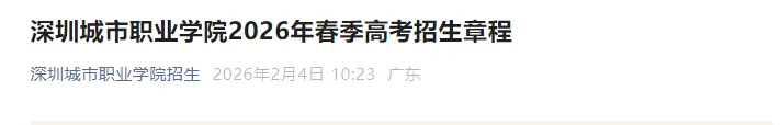 2026年春季高考-深圳城市职业学院2026年春季高考招生章程公布!