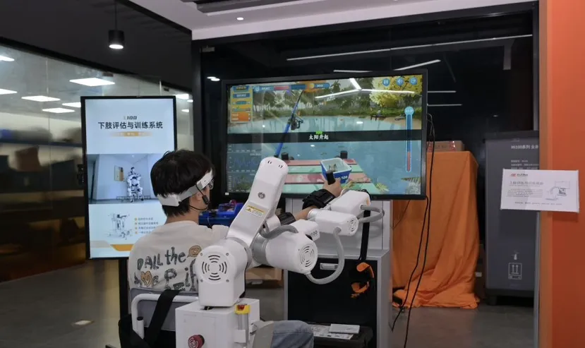 患者通过脑机接口康复机器人开展上肢康复训练