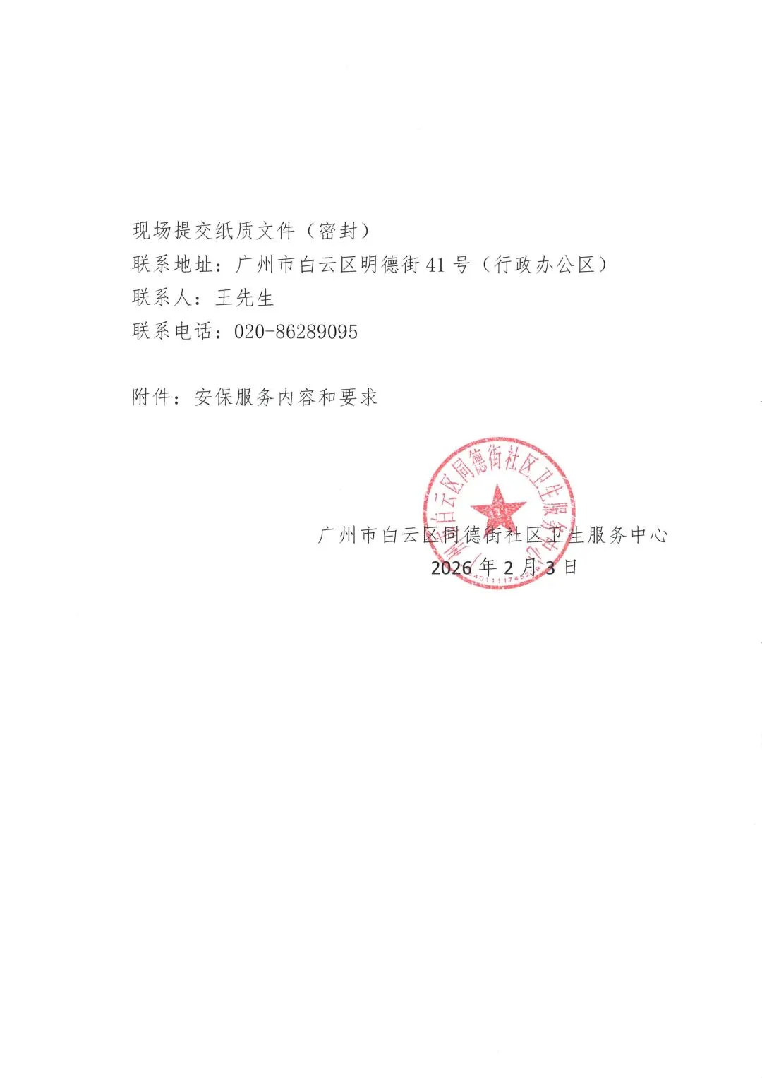 【遴选公告】广州市白云区同德街社区卫生服务中心关于安保服务采购项目院内遴选公告